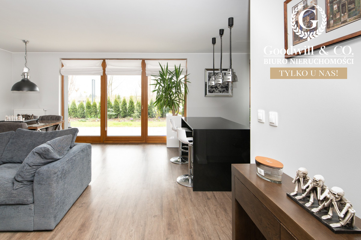 - przestronnego salonu z wyjściem na duży ogródek z drewnianym tarasem,