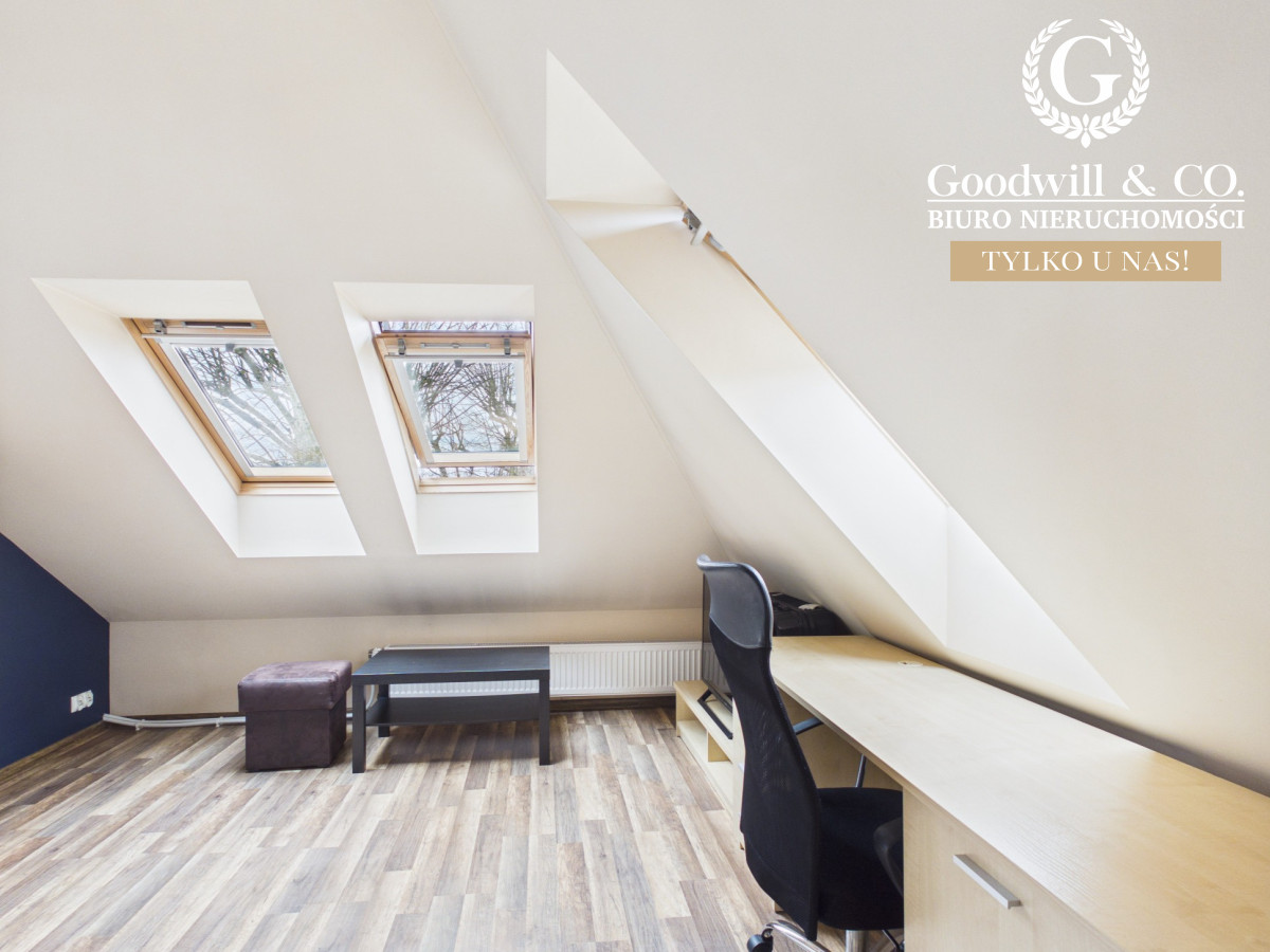 Mieszkanie ma charakter narożny, dzięki czemu jest dobrze doświetlone przez cały dzień. Dodatkowym atutem są skosy, które nadają wnętrzu przytulnego i niepowtarzalnego charakteru (